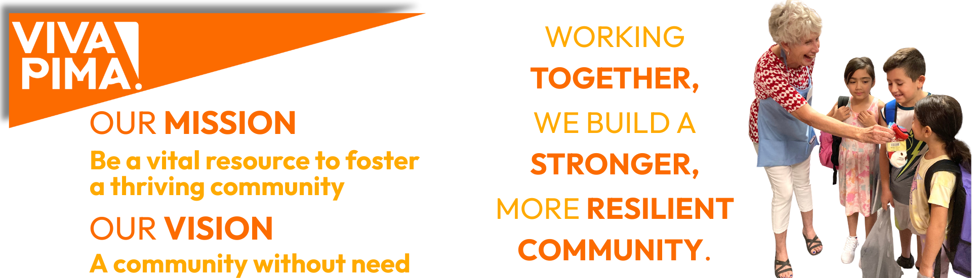 Your donation to VIVA PIMA! powers programs that support our neighbors — redirect your Arizona taxes to a cause you believe in. Contribute up to $495 (single) or $987 (joint). Our QCO code is 20040. Please consult your tax advisor. VIVA PIMA! is a State-recognized Qualified Charitable Organization.