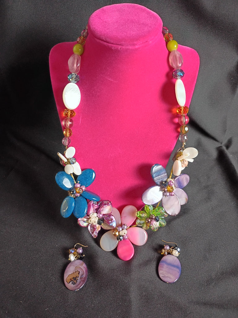Add some bling to your wardrobe with this super fun multicolor acrylic beadwork necklace and earrings set from Betsey Johnson. Floral design. Necklace measures 24"L x 3"W and the earrings are 2"L x 1"W. Both in superb condition.