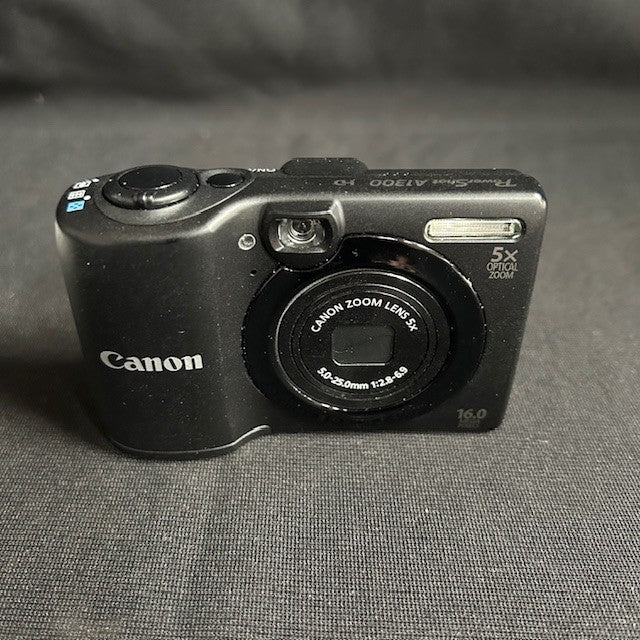 Canon Power Shot A1300 digital camera with 15 MP and 5 X optical zoom lens. Uses 2 - AA batteries. In great working condition.