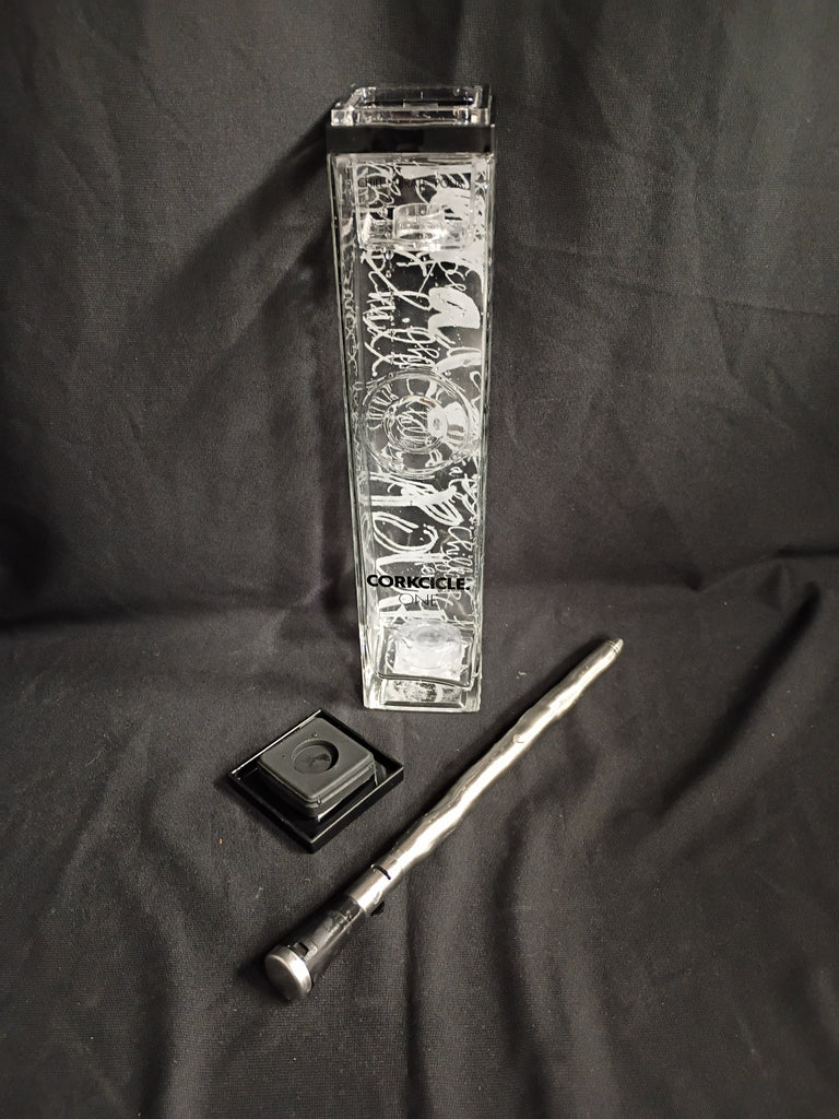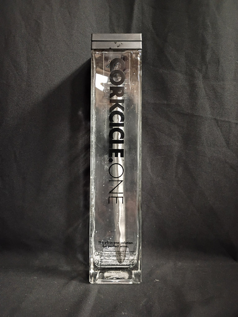 CORKCICLE brand wine chiller. This is a4 in 1 wine chiller, aerator, purer, etc. In glass freezer case. Ready for use!