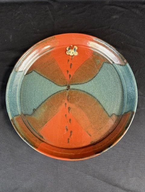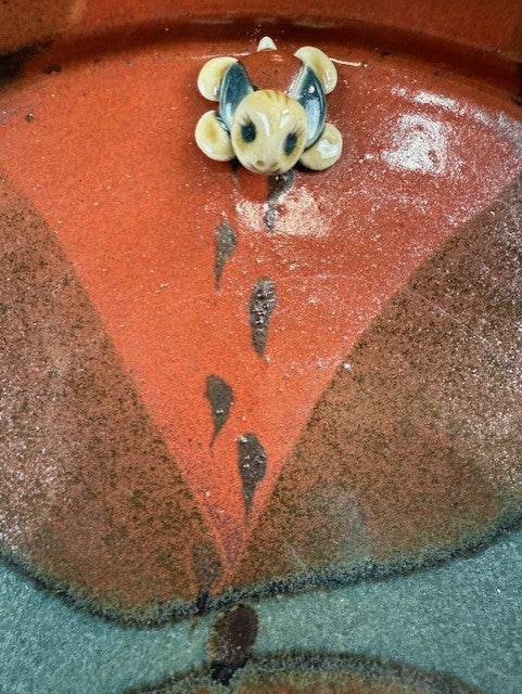 Handcrafted ceramic turtle figurine on larger hand painted stoneware plate. Measures 11"W x 1"H. In excellent condition.