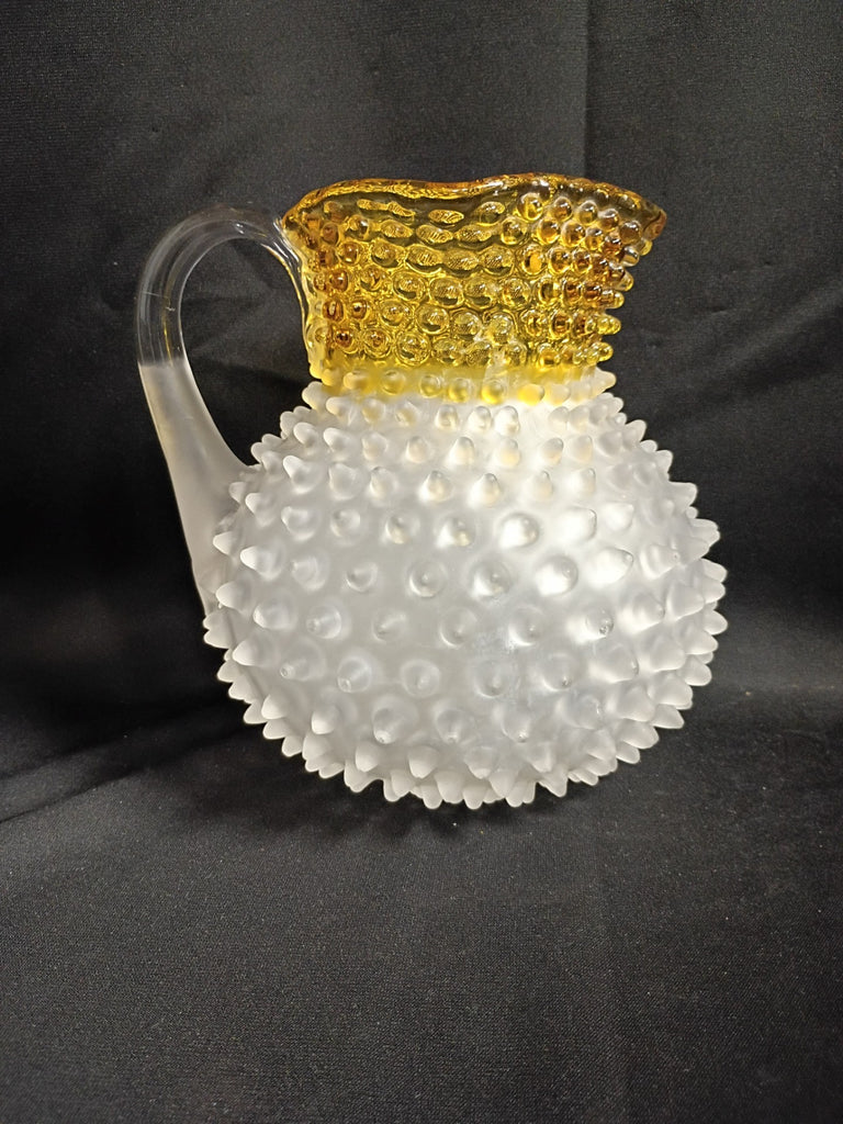 Antique Hobbs Brockunier Francis Ware Dewdrop Pitcher. Early American Pattern Glass. The vessel measures 7.5"H x 7.5"W. In excellent condition.