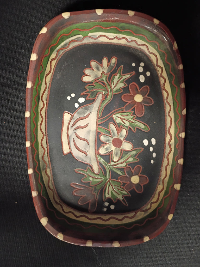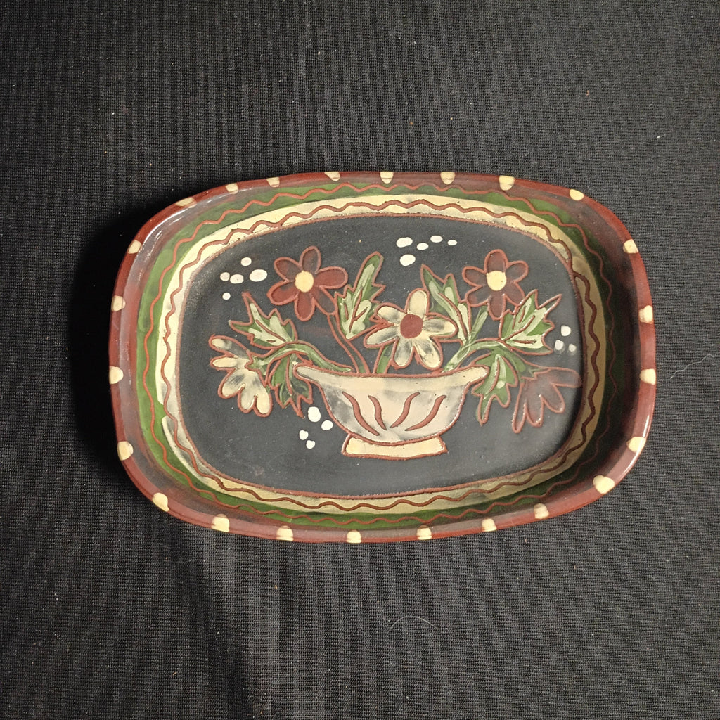 Red Oaks Pottery Pam Armbrust Floral Folk Art Plate