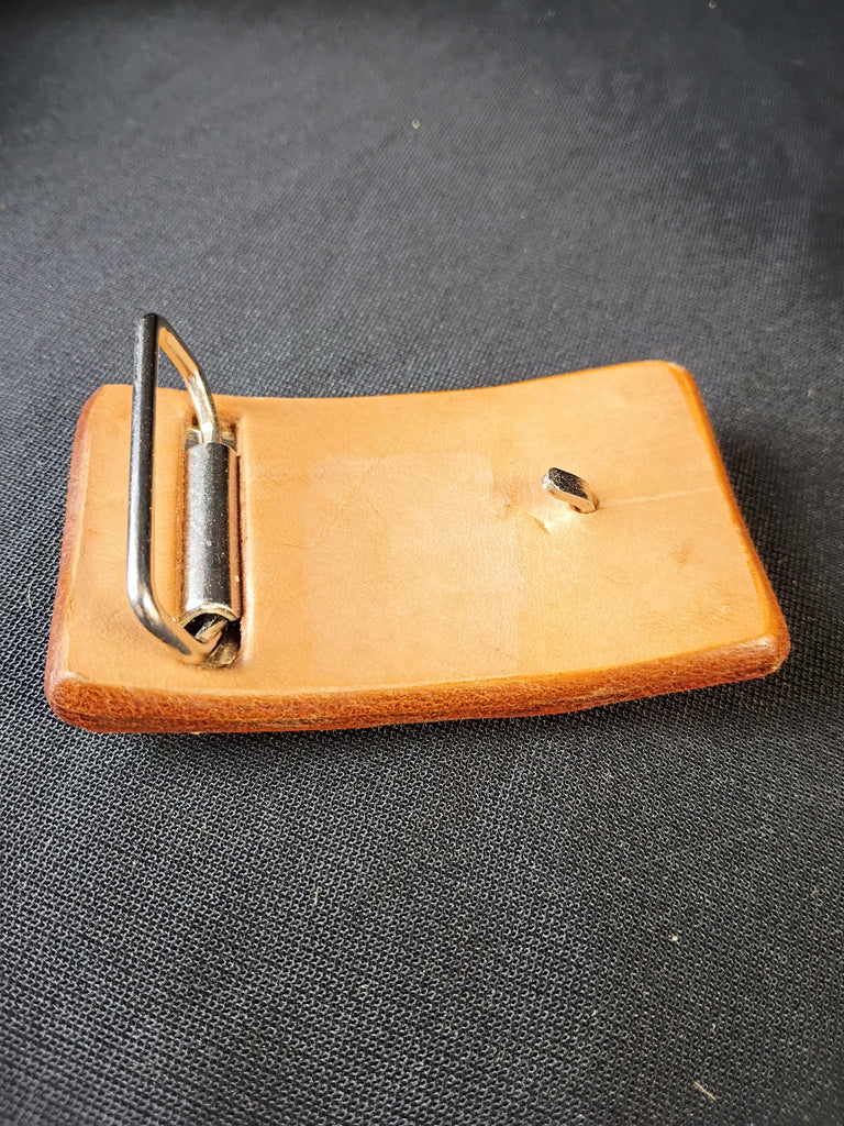 Tooled Leather Sunface Belt Buckle