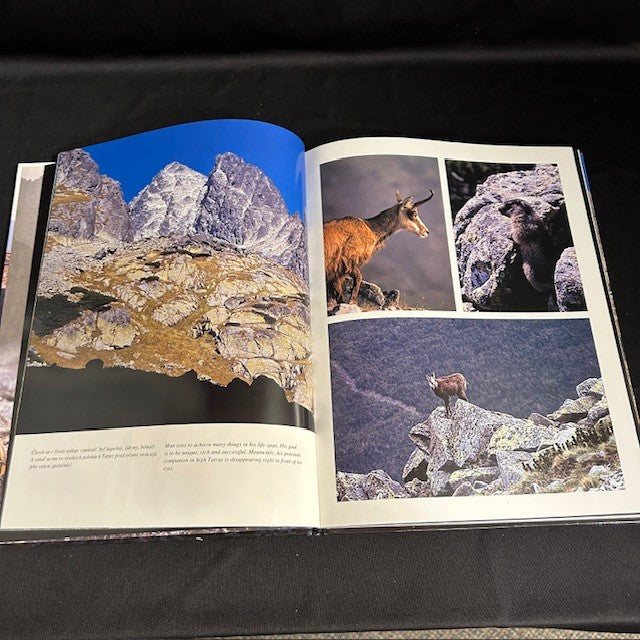 Beautiful color pictures of the landscape, plants and animals of the Tatra Mountains on the Poland Slovakia border. Text in English and Slovak. Measures 11.25"H x 9"W.