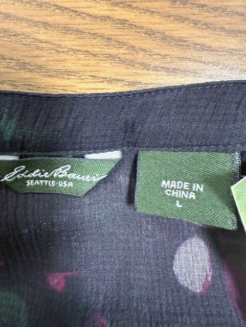 New with tags Eddie Bauer sheet top. Long sleeves in dark floral print. Size large. In excellent condition.