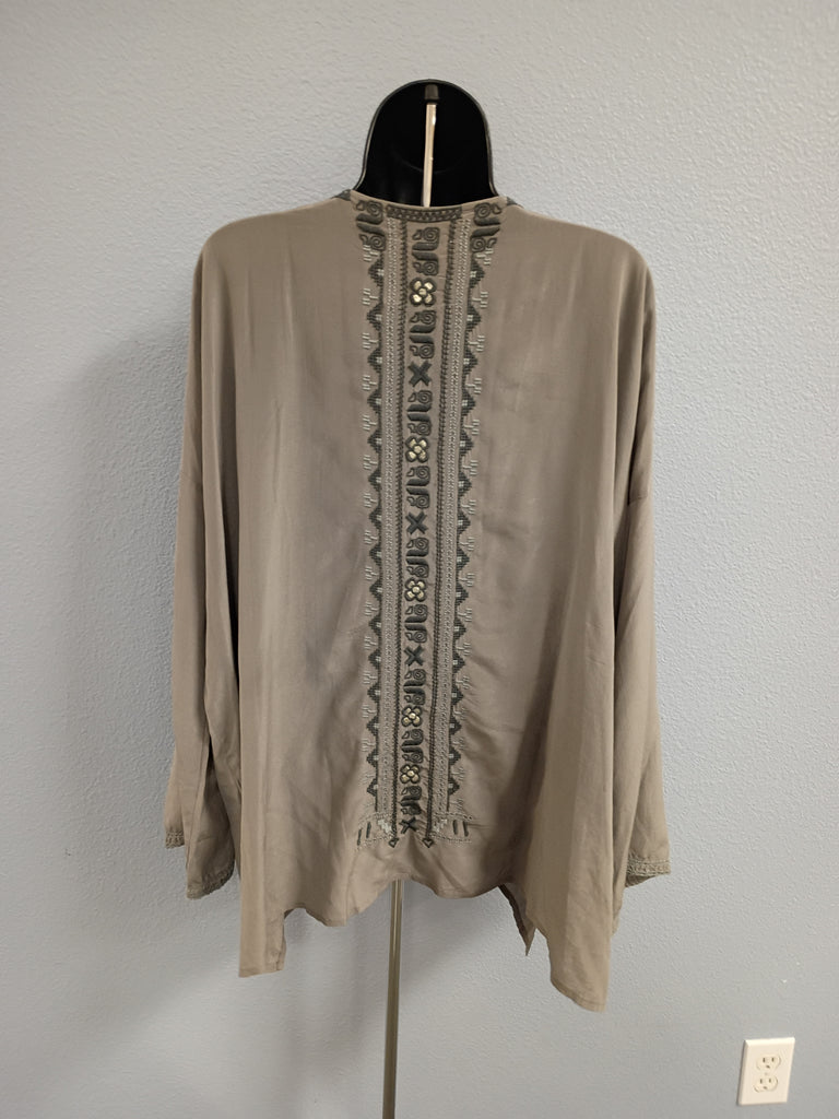 Johnny Was Gray embroidered long sleeve tunic blouse. Size Large. In great condition.