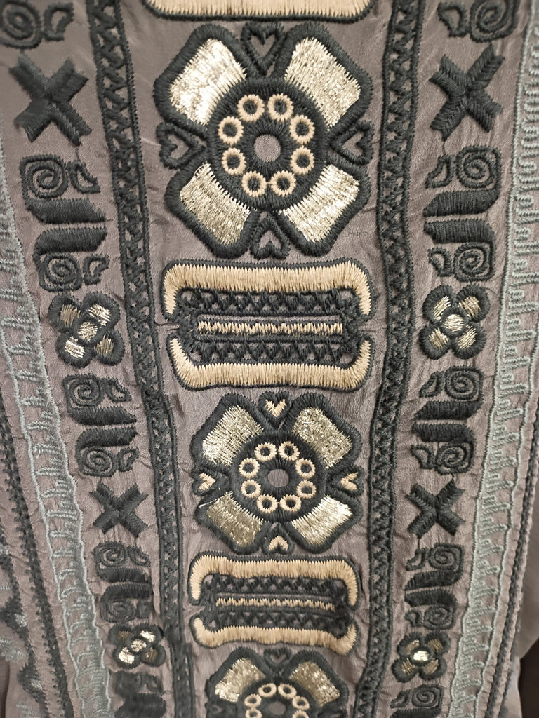 Johnny Was Biya Gray Embroidered Long Sleeve Tunic Sz Lg