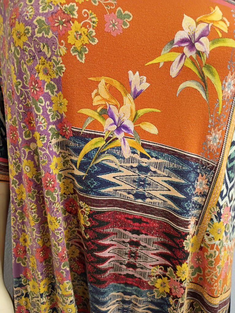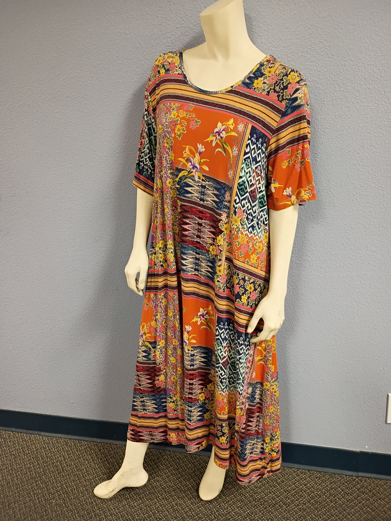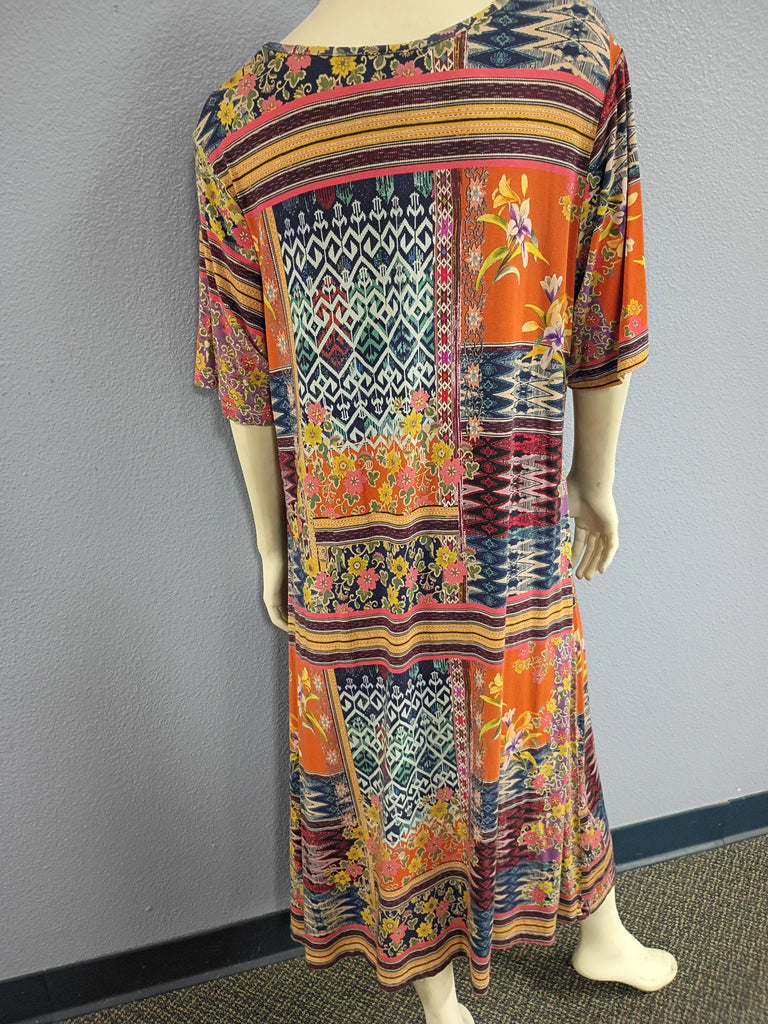 Johnny Was bamboo material dress. Size XL. Orange with multicolor floral motif. In great condition.