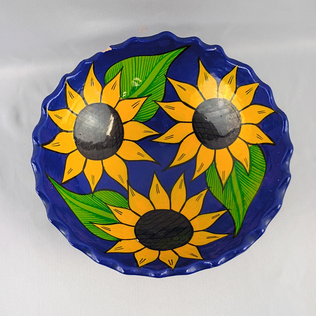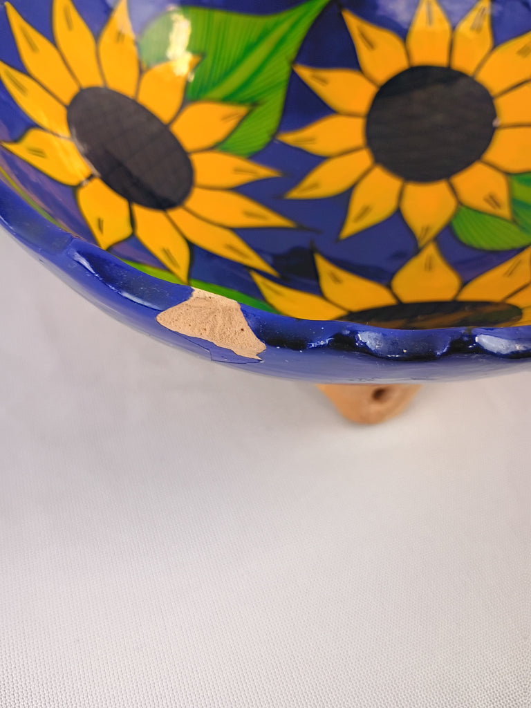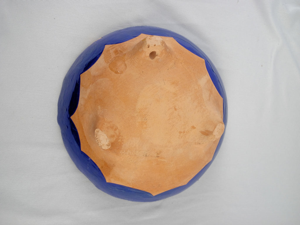 Lovely art pottery bowl. Measures 2.5"H x 7.5"W. Small chip on one side of the rim, in otherwise very good condition. Glazed interior, matte exterior.