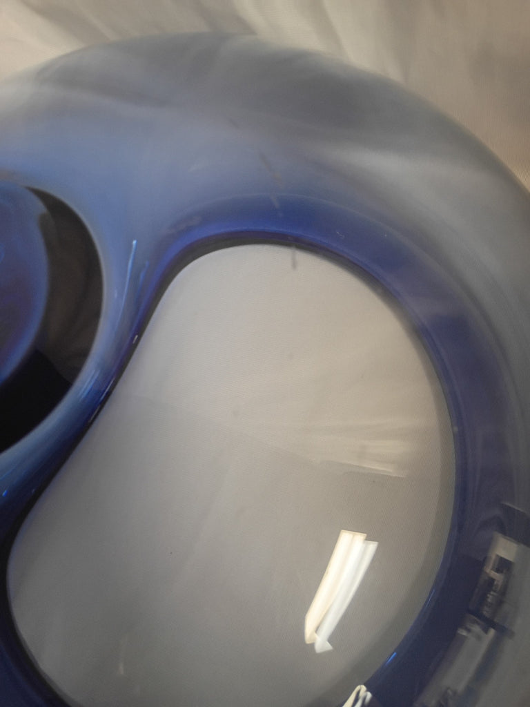 Translucent cobalt blue large centerpiece bowl by Per Lutken for Royal Copenhagen. Small scratches on the bottom of the inside (see photos) in otherwise excellent condition. Measures 13"W x 8"D.