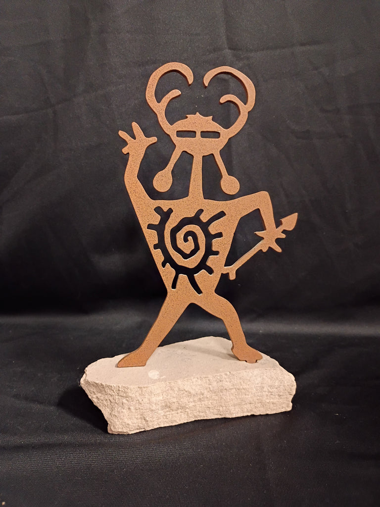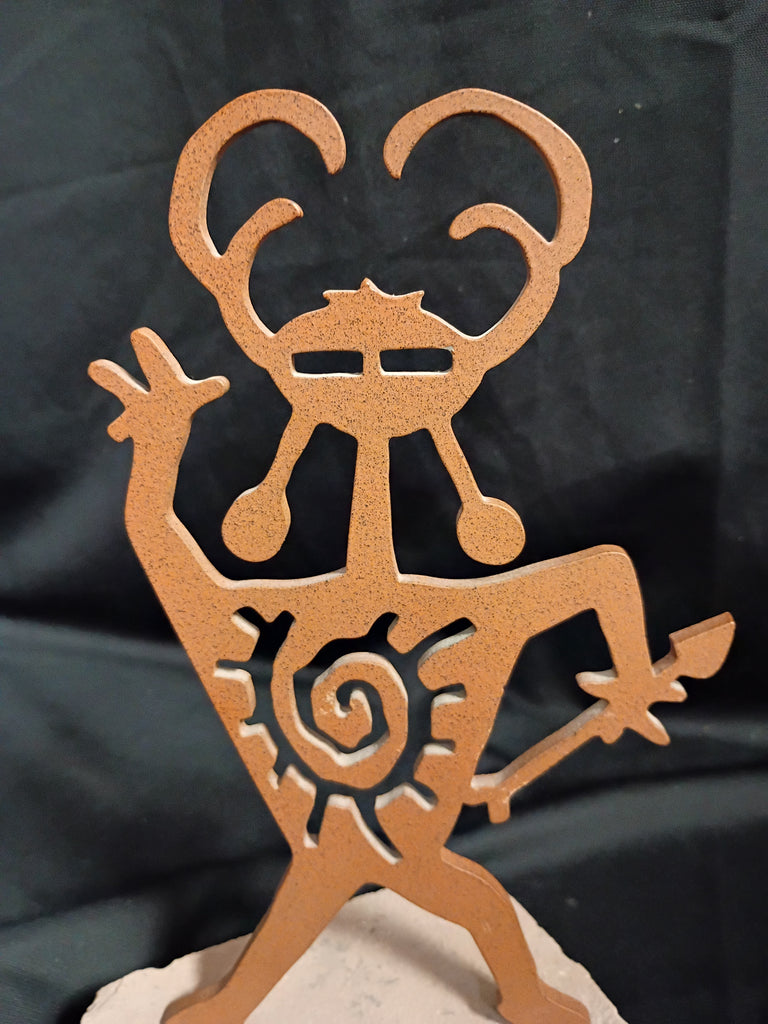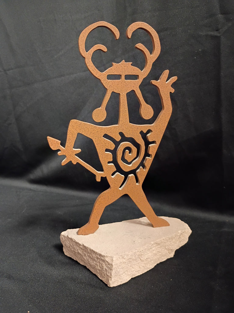 Laser Cut Metal Artwork on Natural Sandstone. Titled "Child Of The Sun". Made In USA by Lazart Laser. Measures: 9"H x 4.5"W.