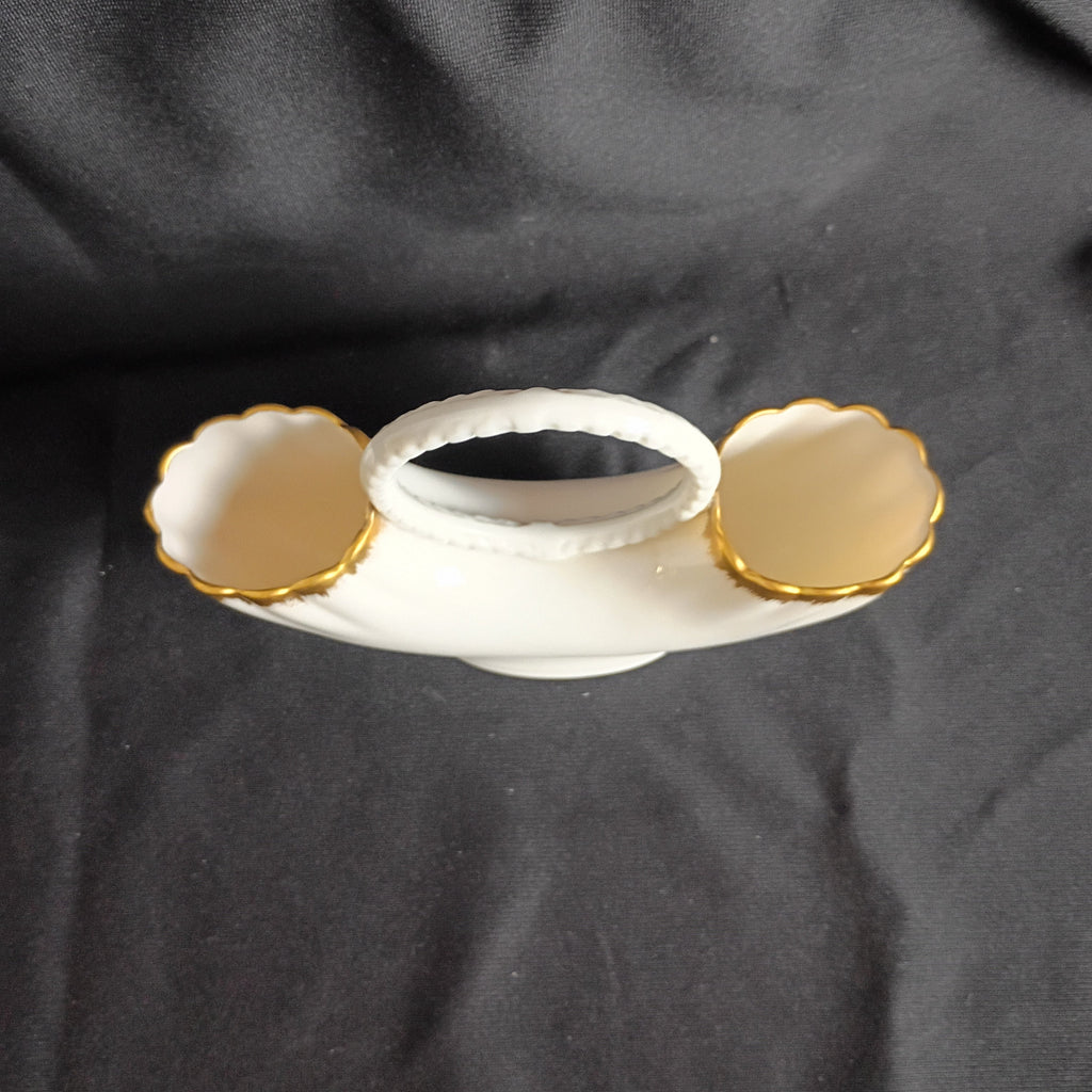 Lenox ivory with gold gilt edges wedding ring double flower vase. In excellent condition. Measures 7"L x 2"W x 5"H.
