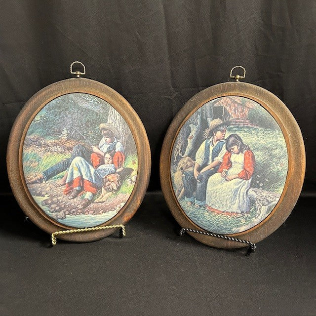 Two wood mounted Jim Daly "Puppy Love" prints. Covered in Convex pebbled glass. In great condition, ready to grace your walls. Each is 12"x15".