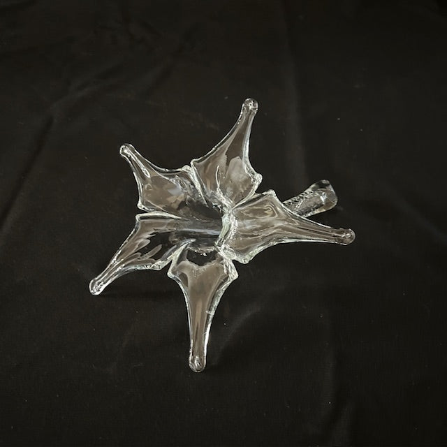 Vintage flower by Hamon art glass company. In excellent condition. Clear with hollow inside and pointed petals. Measures appx 7"L x 6.5"W x 3"H.
