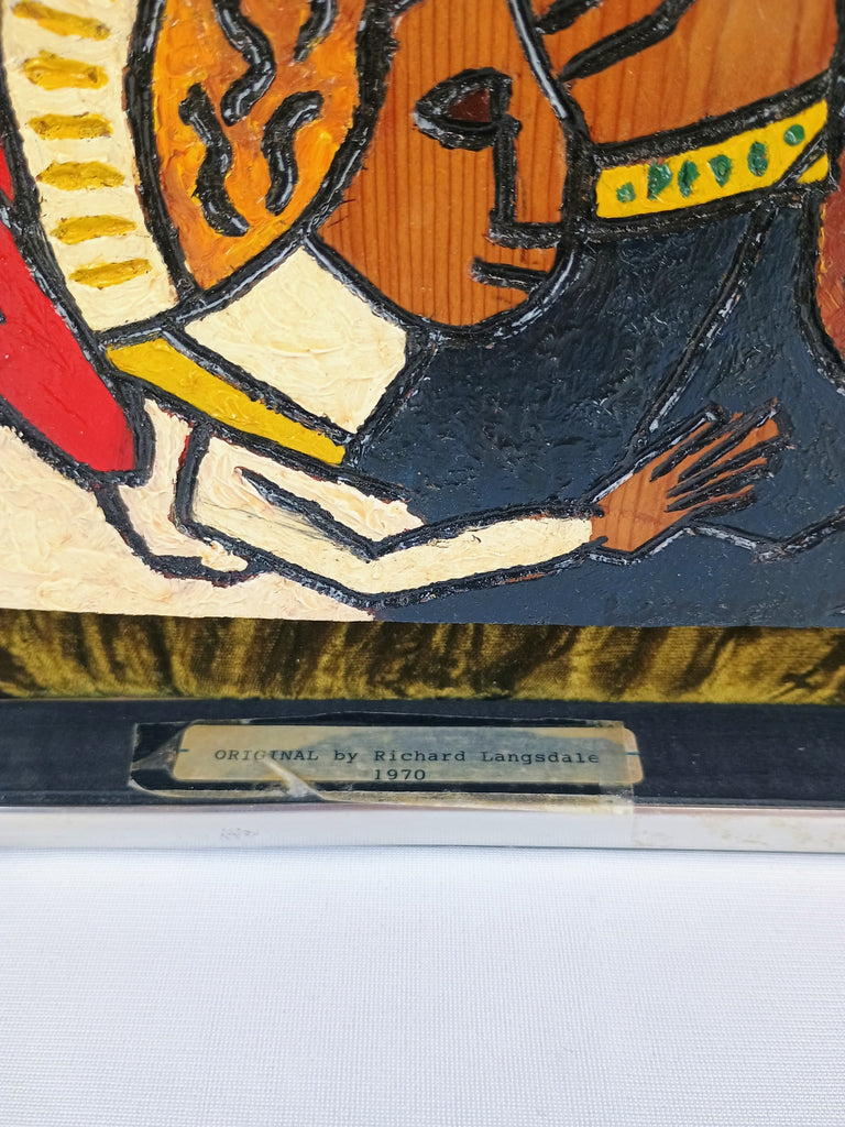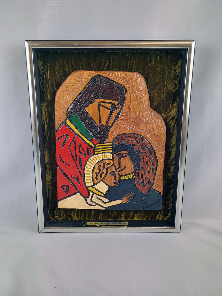 VTG Holy Family Wood on Velvet Portrait by D. Langsdale