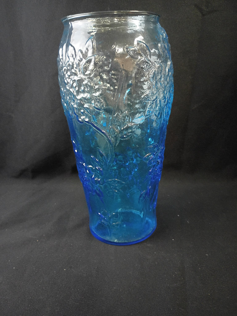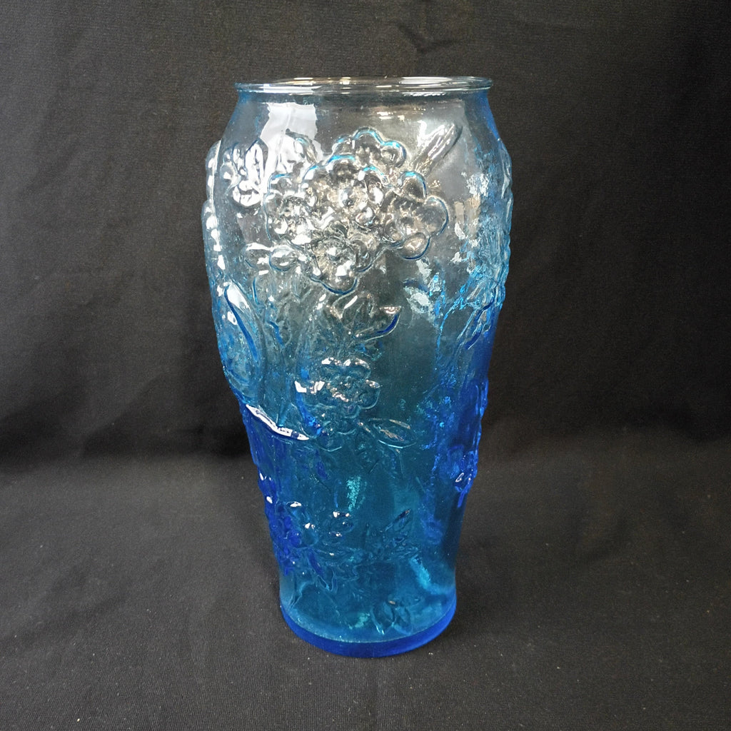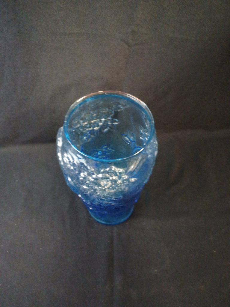 Vintage Tiara Indiana Glass aqua blue love birds vase. Measures 9.5"H x 4"W. Lighter blue on upper glass, darker on bottom. In excellent condition