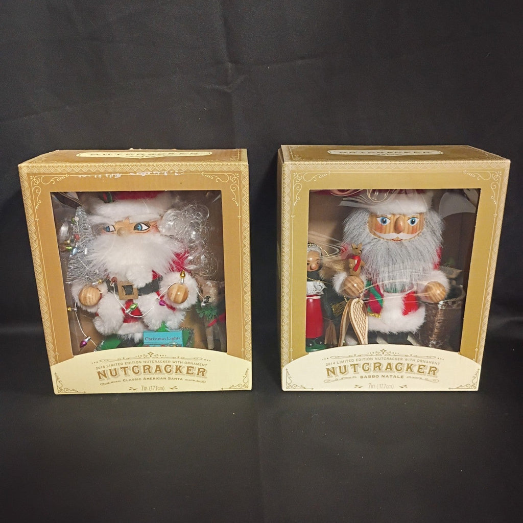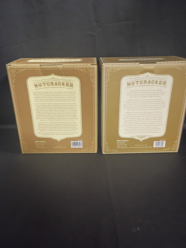 Set of 2 New in Box nutcrackers from World Market. One is Classic American Santa, the other is Italian Santa, "Babbo Natale". Each is appx 7"H x 3.5"W.