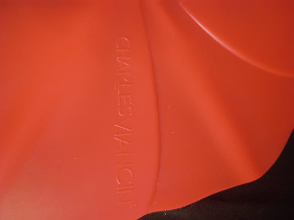 Pre-owned airtight silicone red poppy large storage lid that ensures freshness and prevents spills. BPA-free material. good condition with a few water stains.