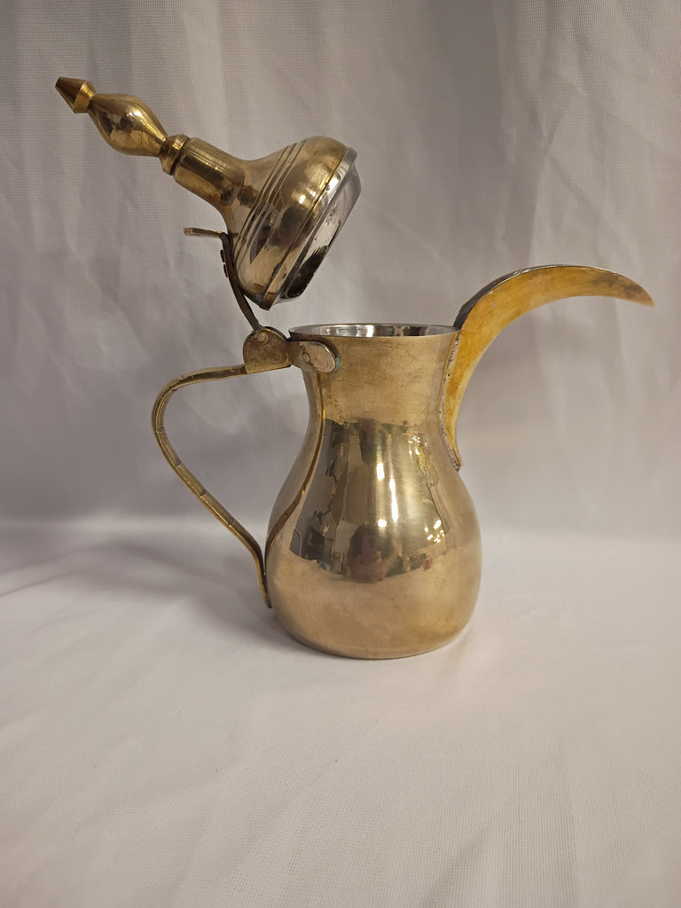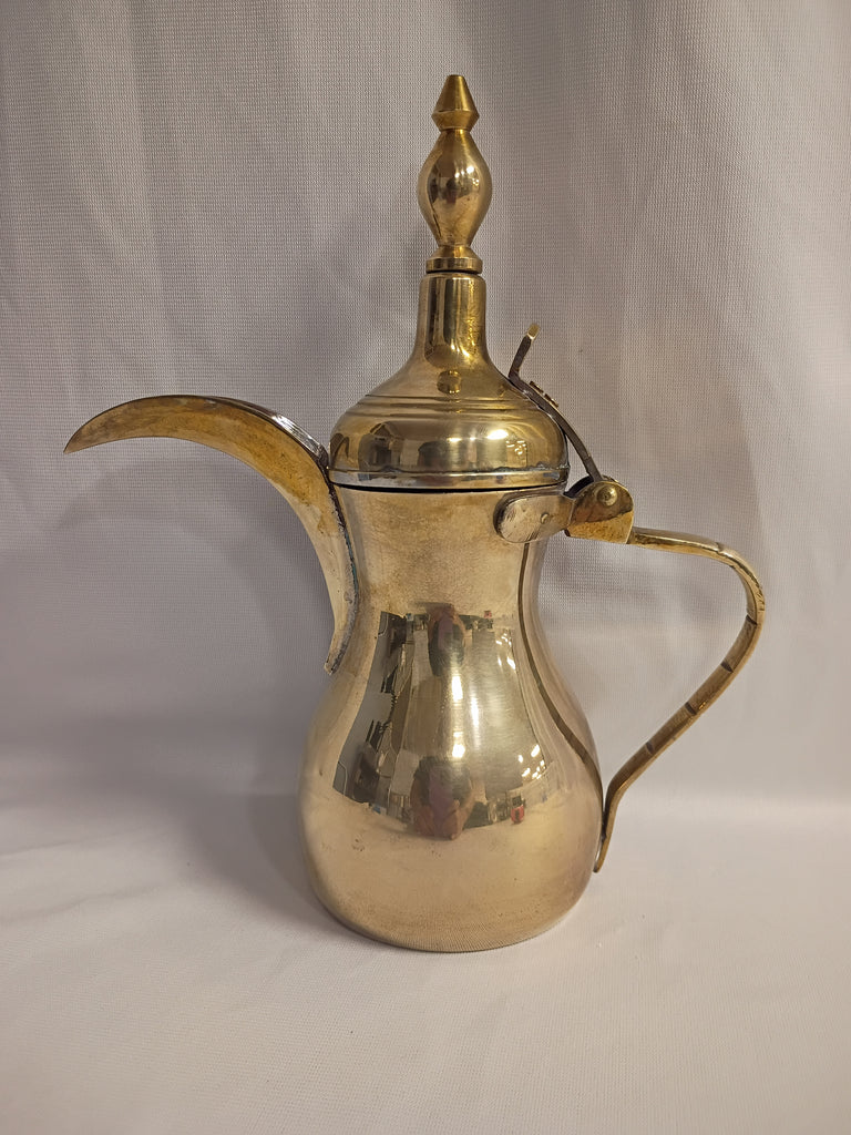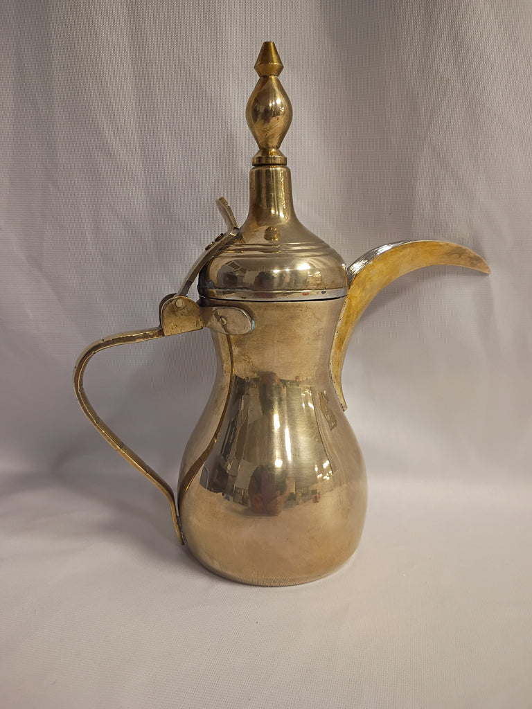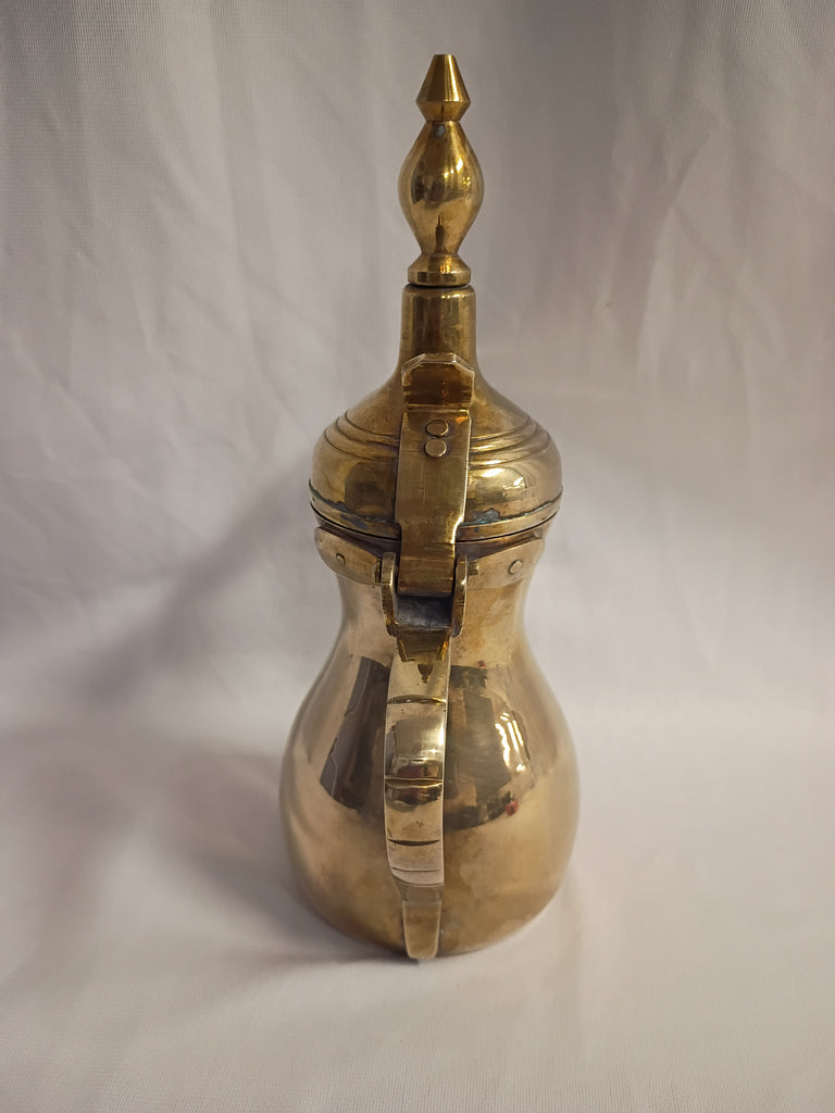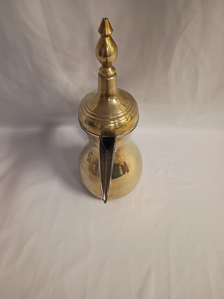 Dallah brass coffee pot. Measures 8"L x 3.5"W x 9"H. In excellent condition.