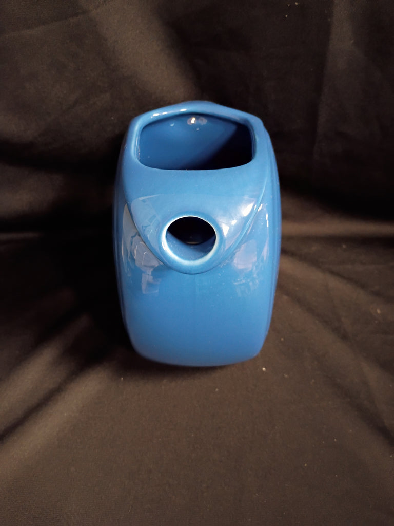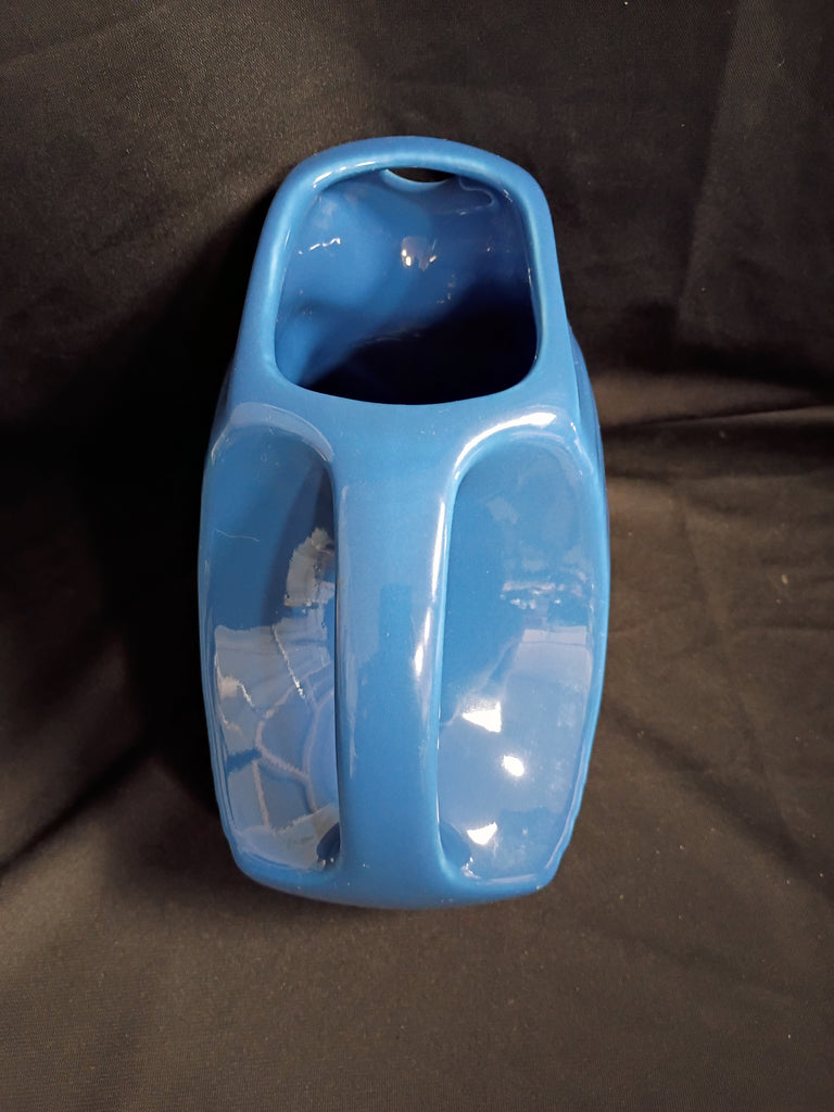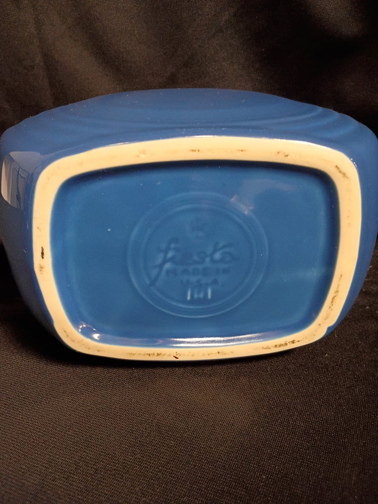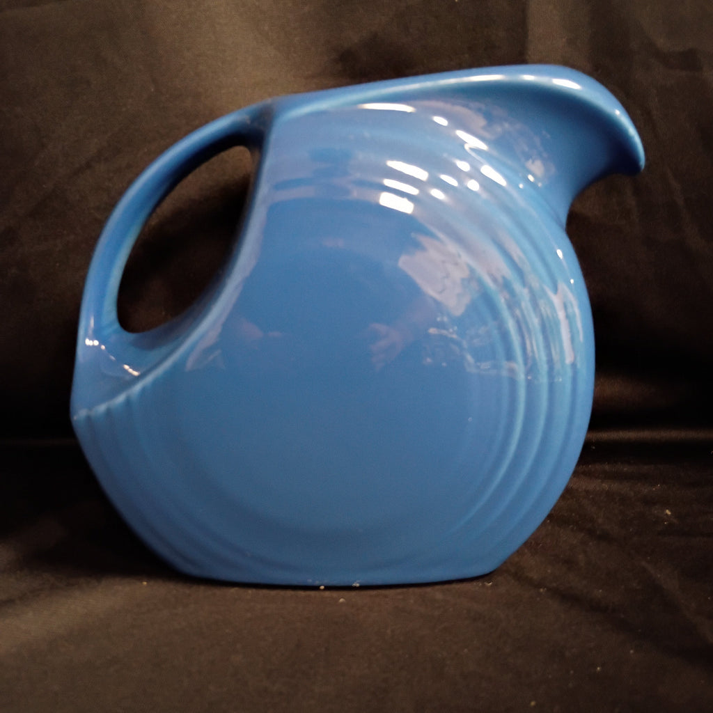 Gorgeous lapis blue fiestaware disc pitcher in excellent condition, stoneware, can store 67 ounces, Measures 9"L x 3.5"W x 7.5"H.