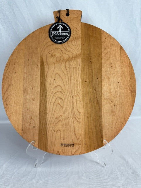 New with tags J.K. Adams wooden cutting board, made in Vermont. Decorative floral design lines the rim of the wood. Measures 13" round.