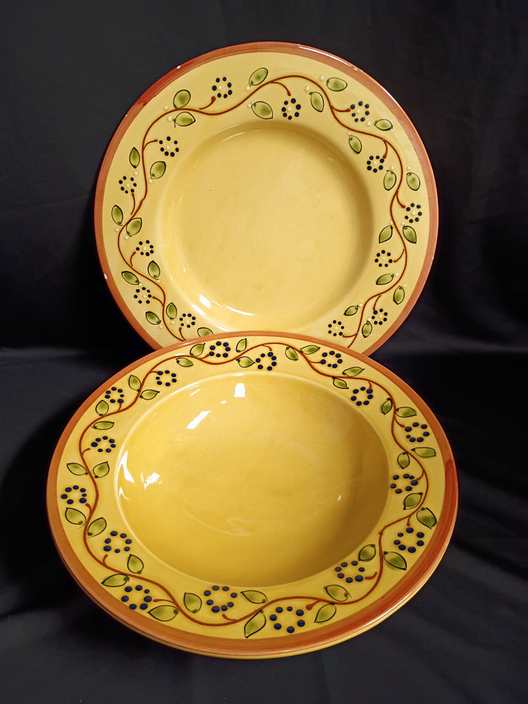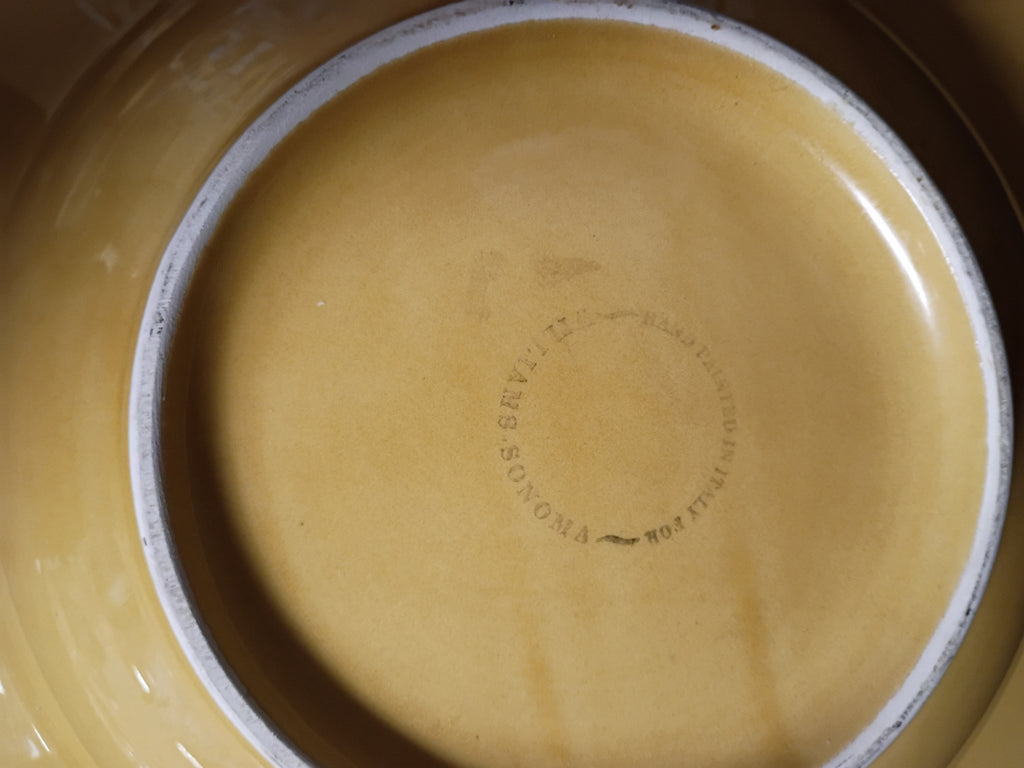 Williams Sonoma Bello Serving bowl and platter. Bowl measures 3.5"H x 14"W, platter measures 14.5"W Plate has three small chips on the rim (see photos). Otherwise, the set is in great condition. Rare find.