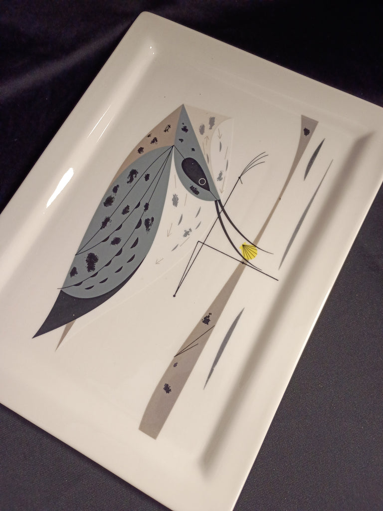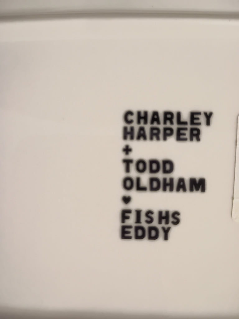 Four plates designed by illustrator Charles Harper and renowned fashion designer, Todd Oldham. Measures 12"L x 9"H. All in excellent condition. MCM style. Originally sold for $36.00 a plate.