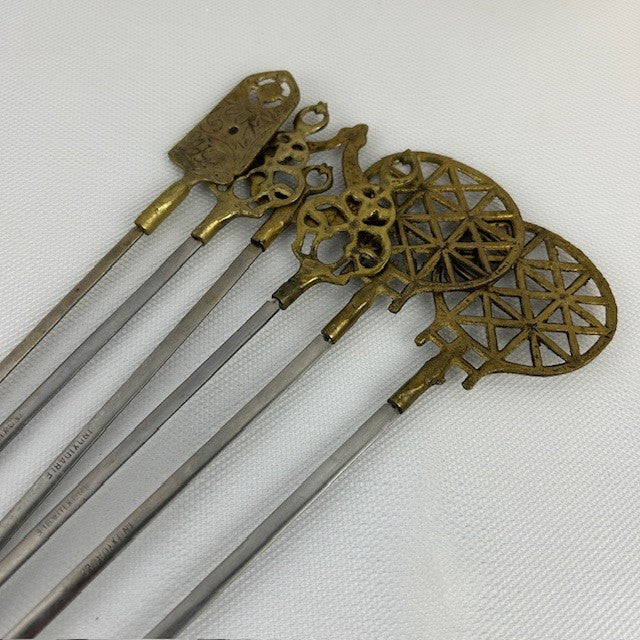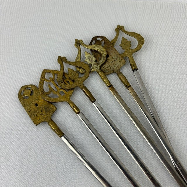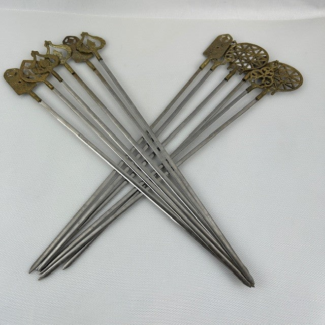 Set of twelve 16" Turkish Brass and Stainless Shish Kabob skewers. All in excellent condition. Ready for your next bbq!