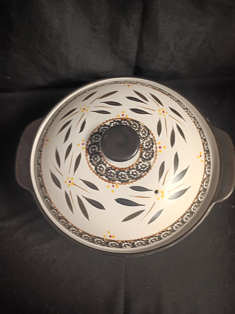 Temptations by Tara Old World Brown 2 QT casserole with lid. In excellent condition. Ceramic. Measures 13"W x 9"H.