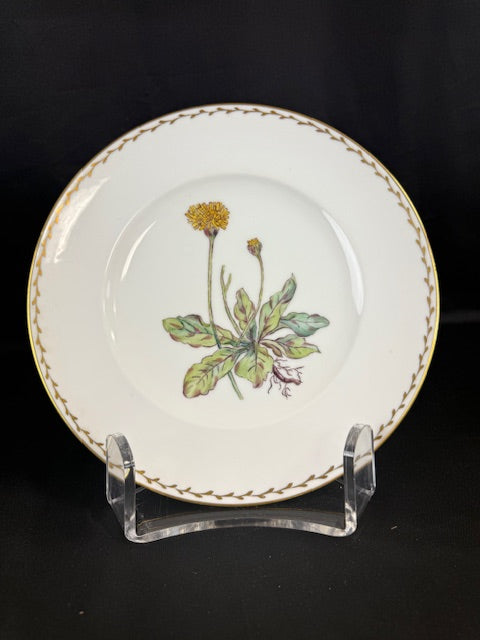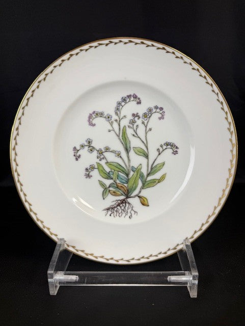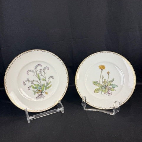Two dinner plates made by Bing & Grondahl in Denmark. Botanical floral illustrations on each. Each measures appx 9.5"W.