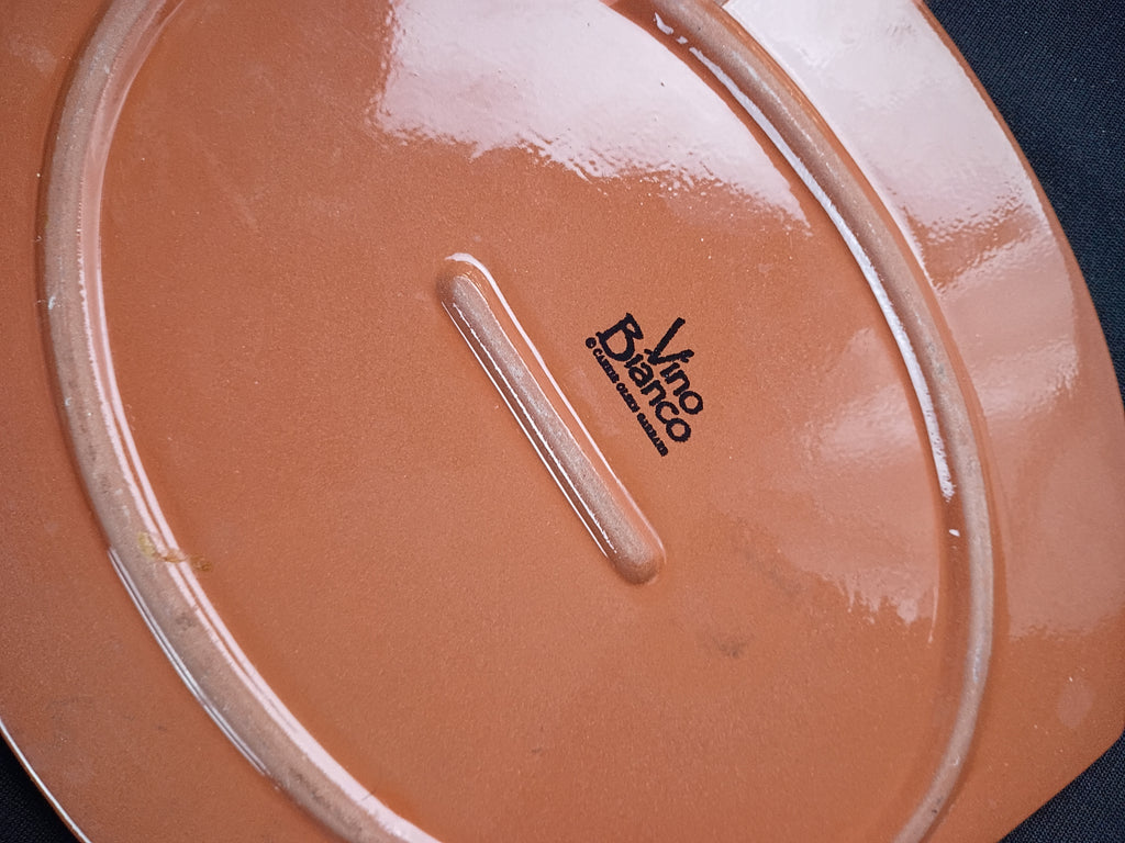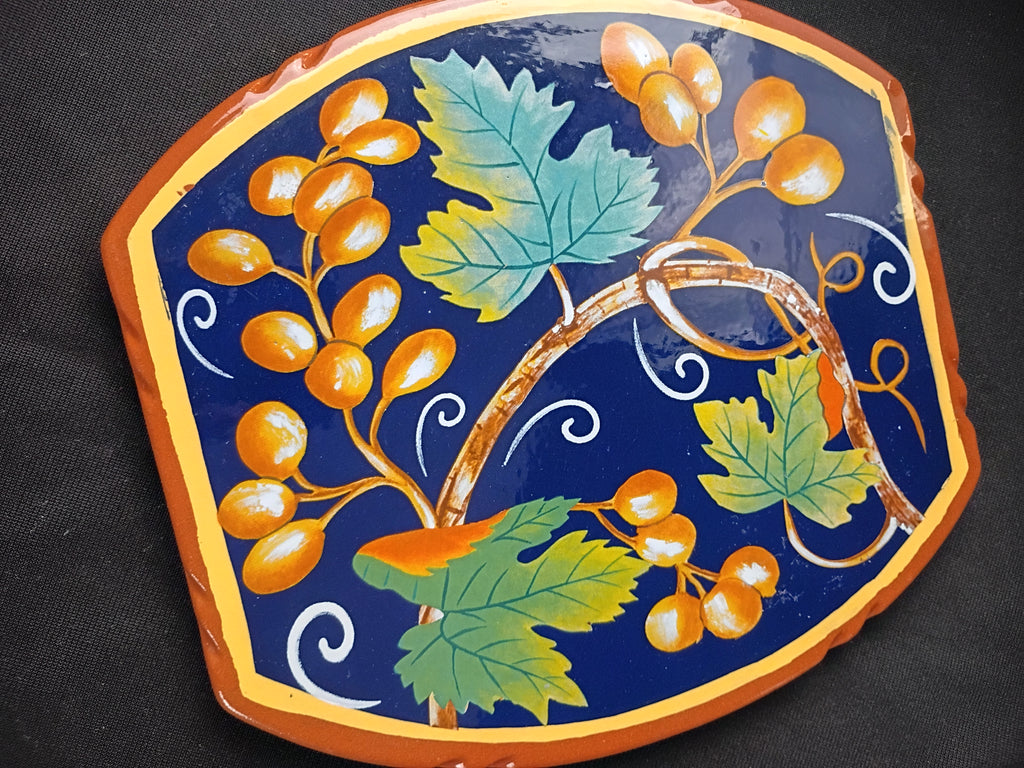 Ceramic hot plate with grape design. Made in Italy. In excellent condition. Measures 9"L x 8.5"W.