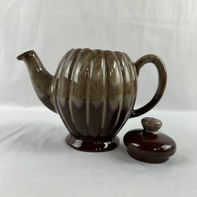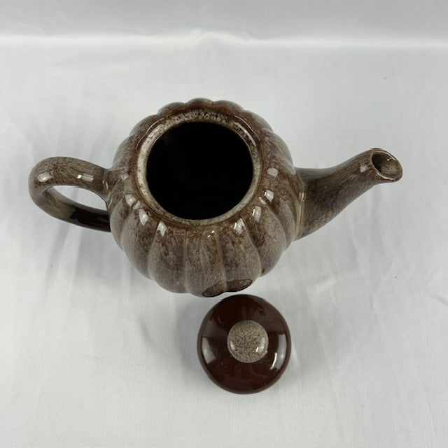 Brown grey glaze pottery by Evangeline Canada. This is model 1027. This teapot is in excellent condition. Measures 6"H x 5.5"W.