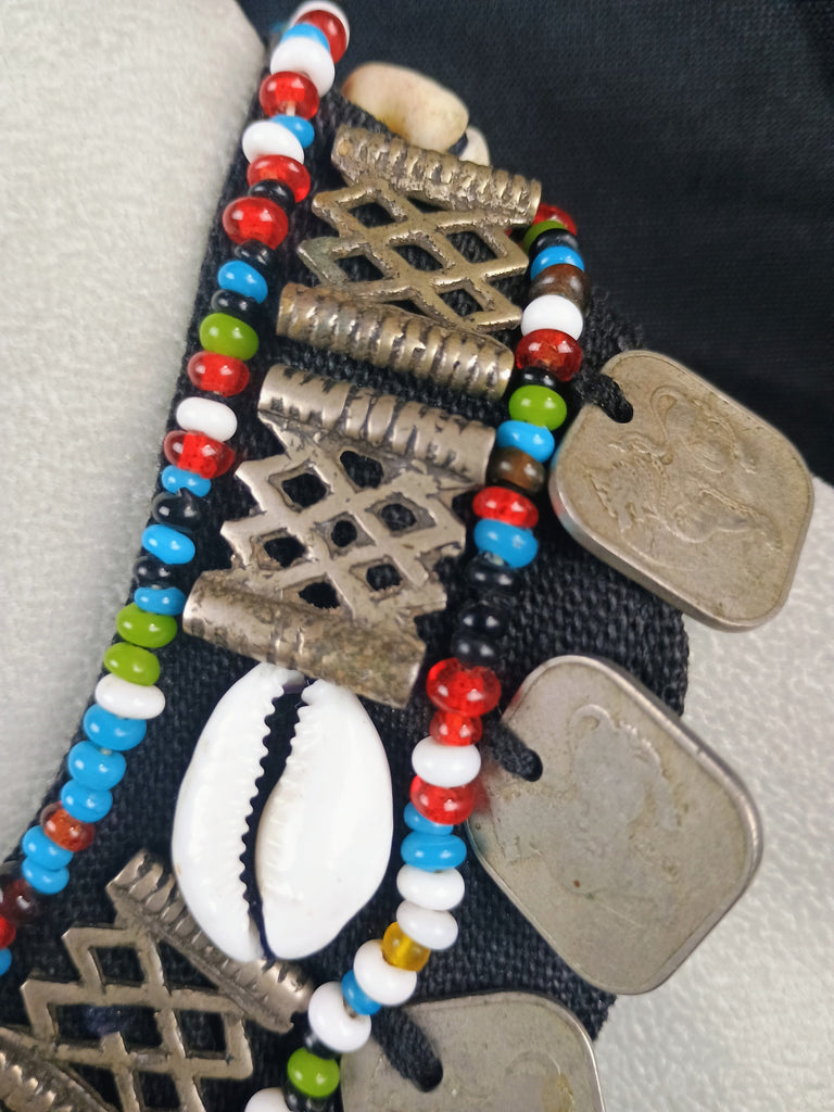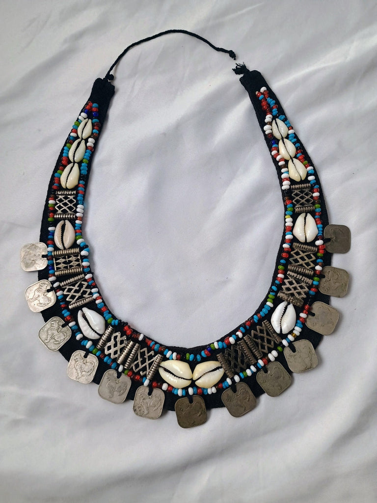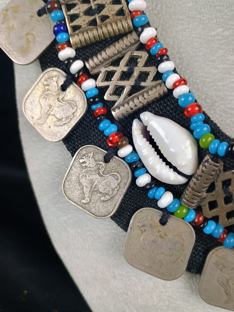 VTG Thai Tribal Shell & Coin Collar Necklace