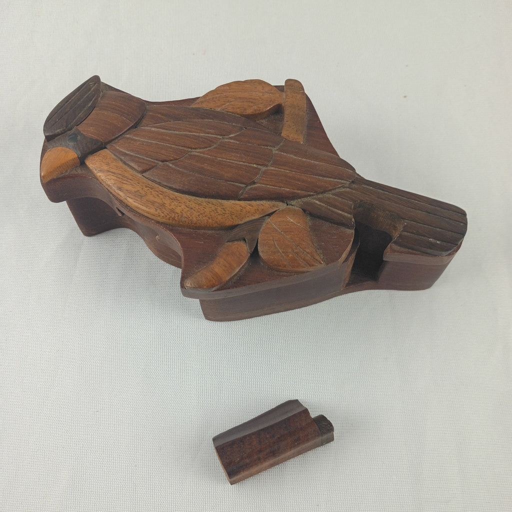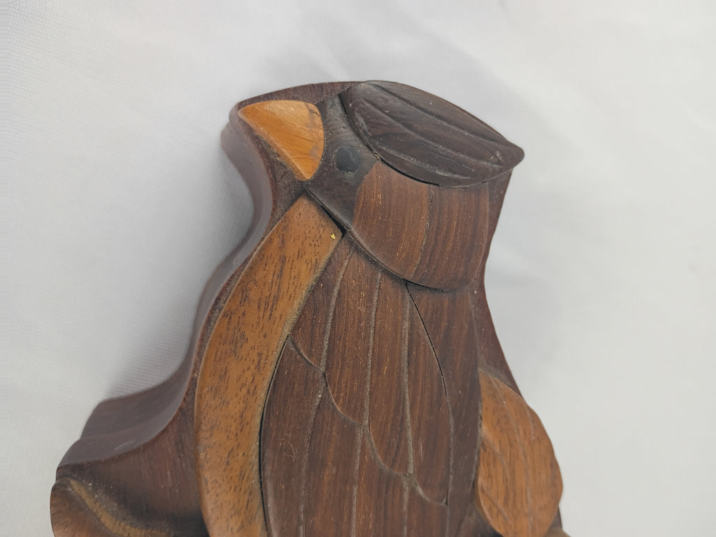 Wooden puzzle box, shaped like a bird when completed. Measures 6"L x 4"W x 2"H. In great complete condition. Great for kids and adults alike.