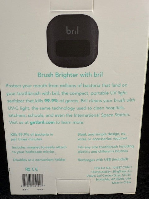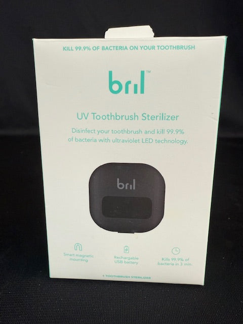 Rechargeable toothbrush sterilizer in black. Easy to mount. Kills 99.9% of bacteria. New in box.