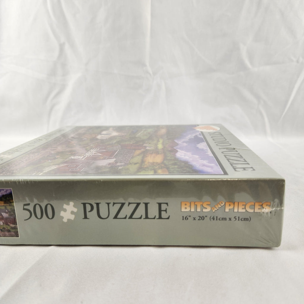 New in Box Studio puzzle 500 pieces measuring16 x 20 in. Puzzle forms Bonnie White's "Before The Storm illustration".