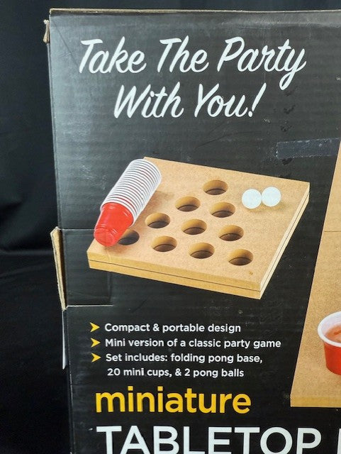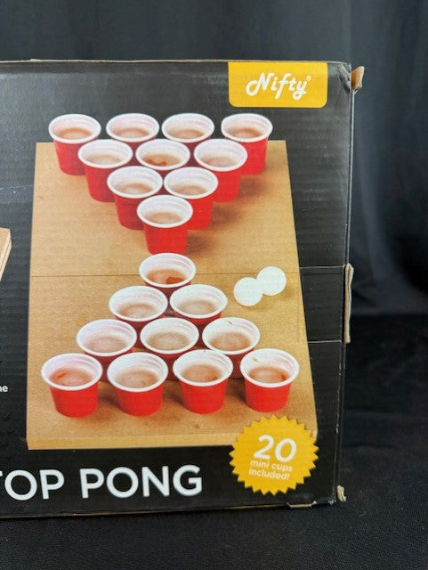 Have hours of fun with a this tabletop pong game that you can take from party to party. It includes a folding pong base, 20 mini cups, and 2 pong balls.