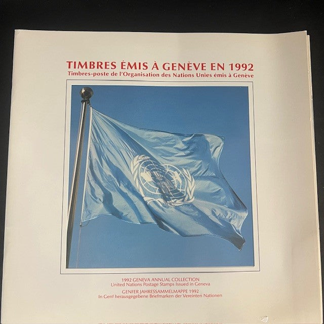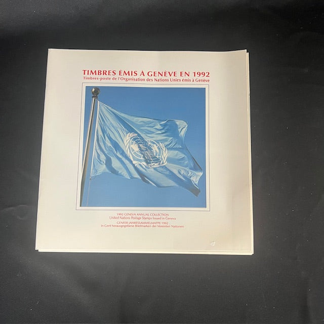 Three 1992 Geneva annual collection booklets. Also Three 1993 annual collections including 1993 Vienna, 1993 New York, 1993 Geneva. All booklets have stamps in their original pockets and plastic. 10" X 10" and 9" X 12"