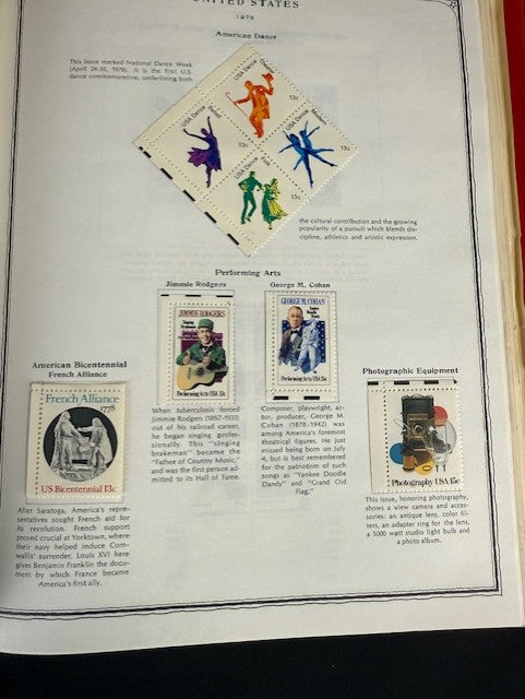 Album full of United States stamps. Vintage, dated 1970s. Some blank pages but mostly full. Stamps dating back to 1873. Some post marked. All in very good condition.