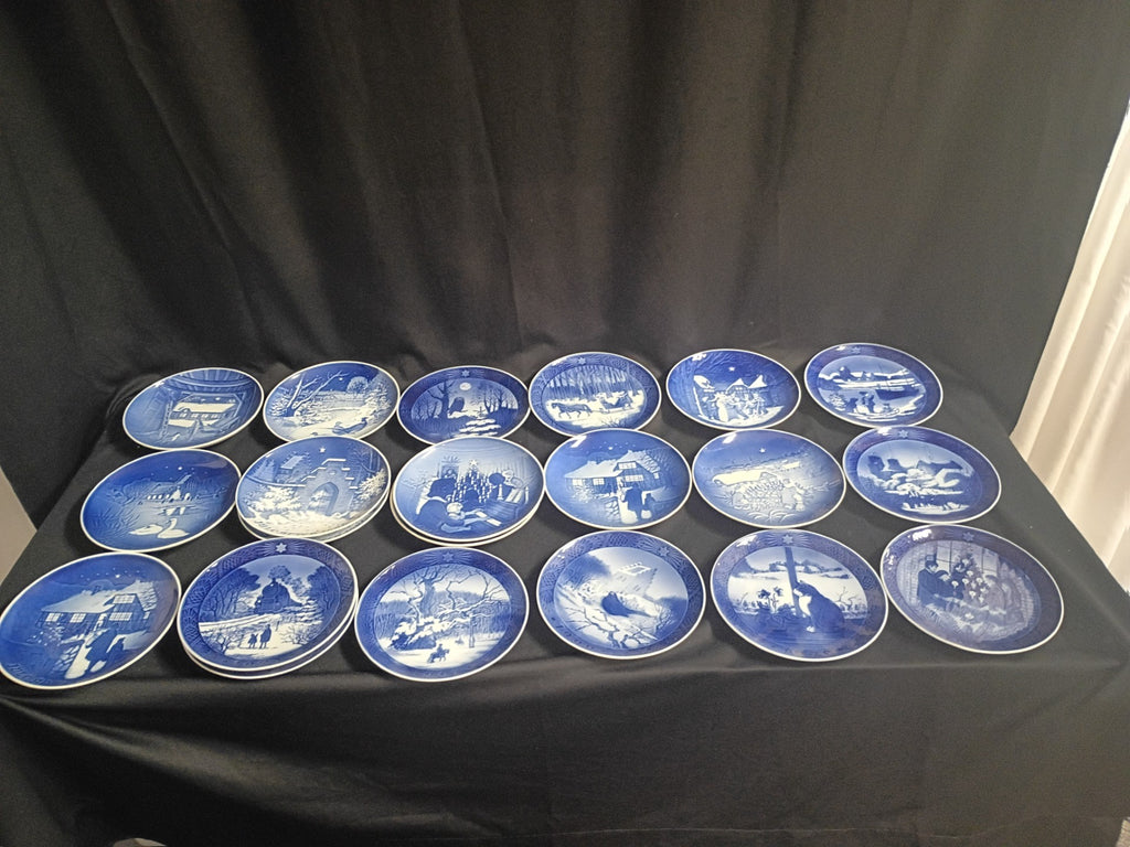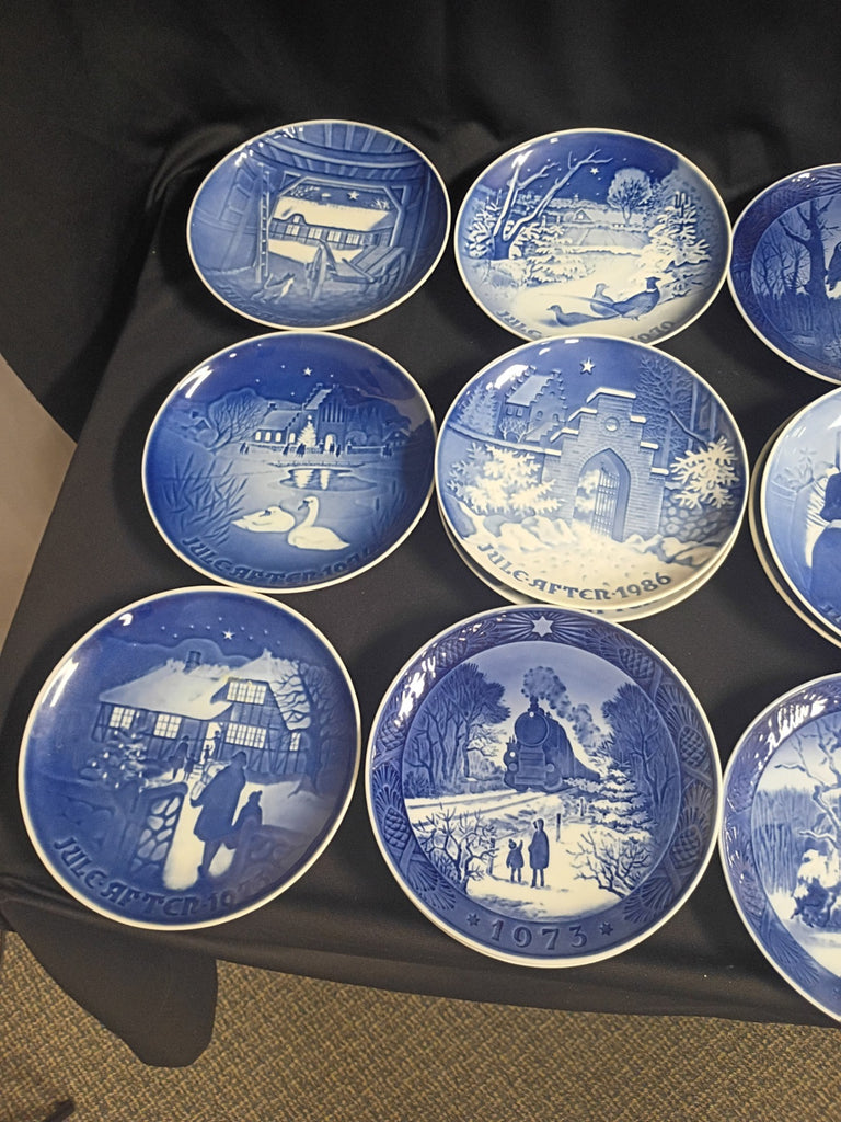 Set of 21 Danish Jul (Christmas) Plates. Dated 1970s - 1990s. All in excellent condition. Some Royal Copenhagen, some Bing & Grondhal. Each measures appx 7"D