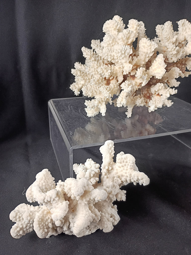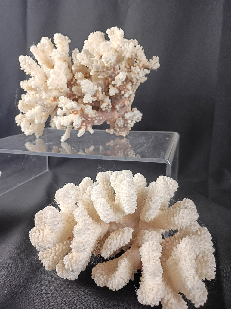 Set of three coral specimen. These are referred to as "Cauliflower Coral". Each measures 8 x 6 in., 6 x 4 in., and 6 x 3 in. respectively. All in great condition ready to decorate any room or cabinet space.