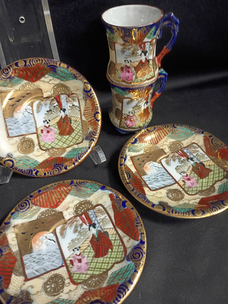 Set of 4 VTG Kutani Meiji Geisha Tea Cups & Saucers