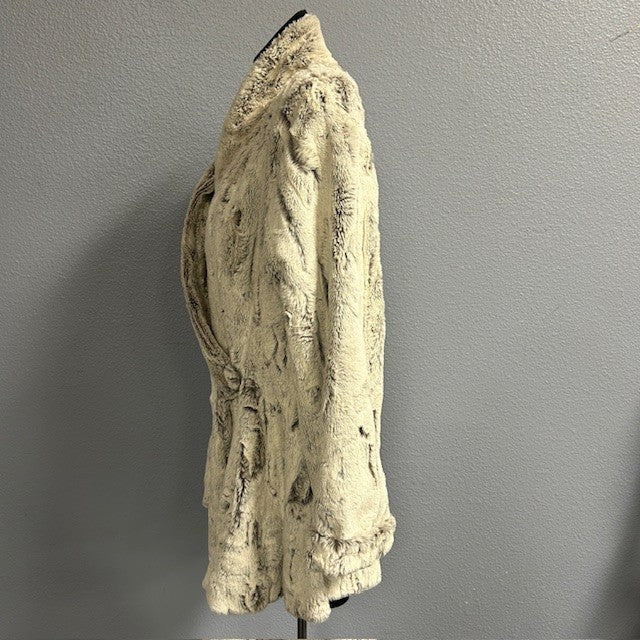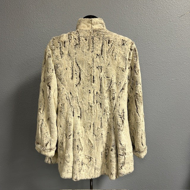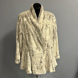 From 90's designer Adele Davis ORR, this is a lovely faux chinchilla wrap jacket. Size S, measurements are: shoulder to shoulder is 14", sleeves 22", length 30". Incredibly soft and stylish.