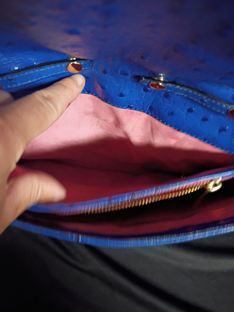 Atelier Cobalt cobalt blue leather purse. Measures 10.5"L x 1.75"W x 8.5"H with a 11.625 strap drop. Pink suede interior. In excellent condition.