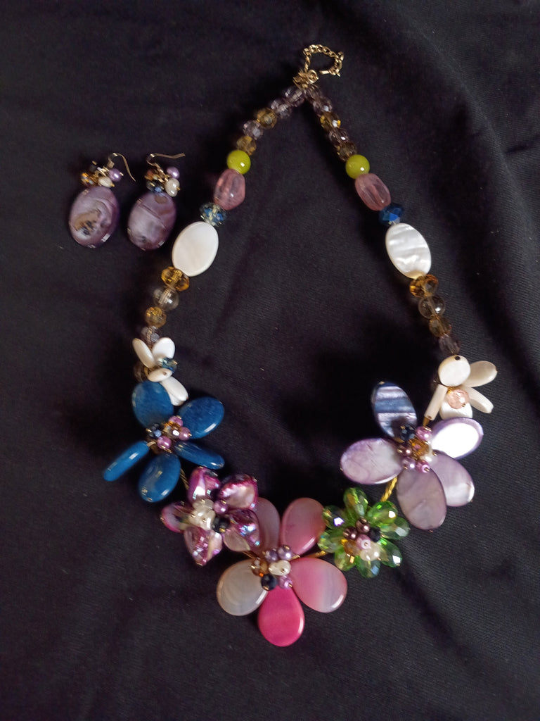 Add some bling to your wardrobe with this super fun multicolor acrylic beadwork necklace and earrings set from Betsey Johnson. Floral design. Necklace measures 24"L x 3"W and the earrings are 2"L x 1"W. Both in superb condition.