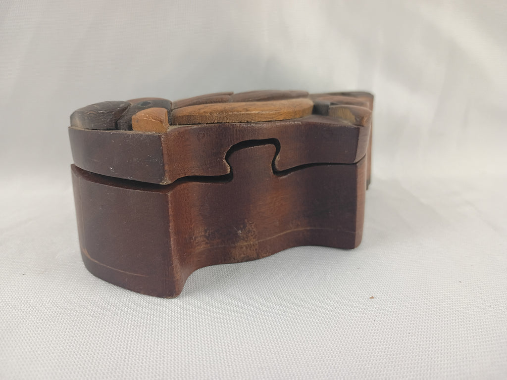 Wooden puzzle box, shaped like a bird when completed. Measures 6"L x 4"W x 2"H. In great complete condition. Great for kids and adults alike.