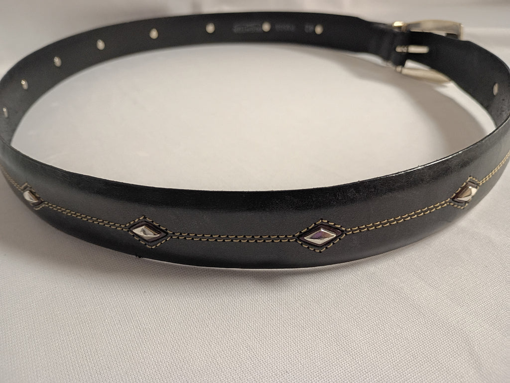 Brighton man's black leather belt with silver diamond stud design. Size 42. In great condition.