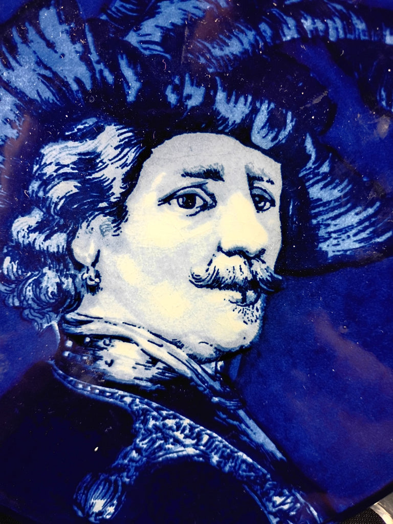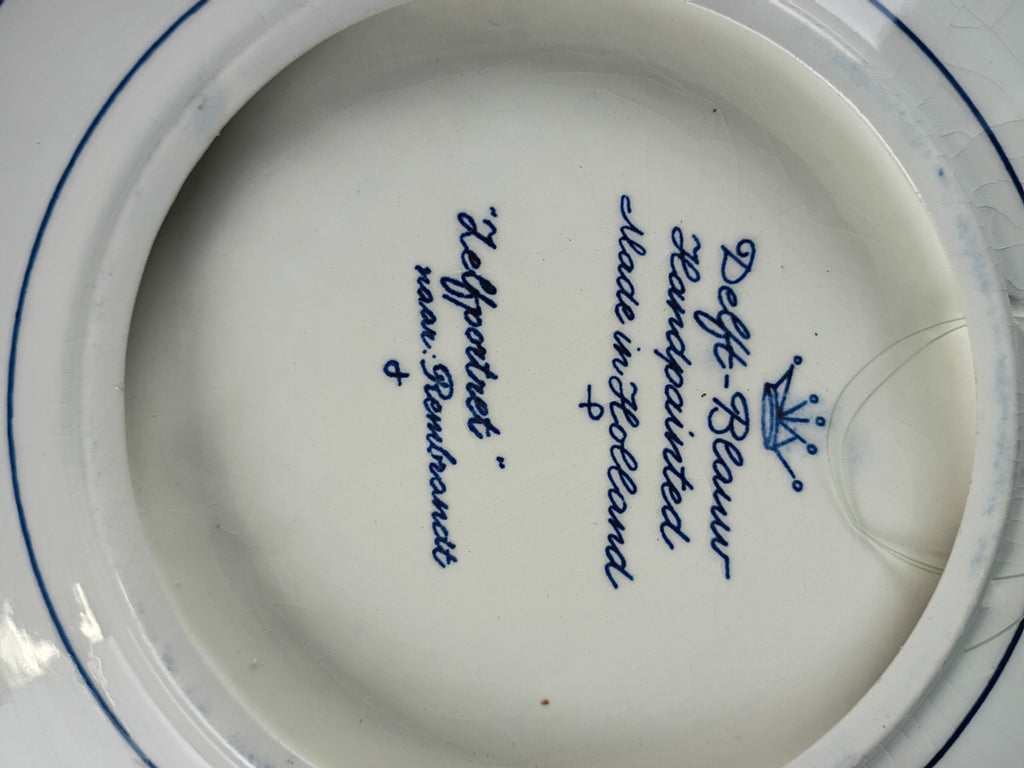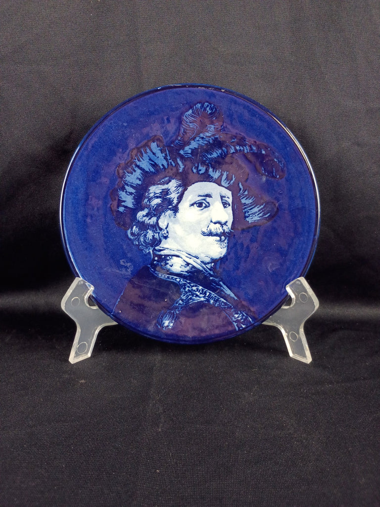 Vintage Delft-Blue handpainted decorator Plate; made in Holland; Self portrait of Rembrandt. Measures 7"W. In excellent condition.
