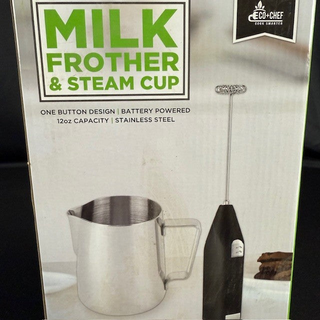 New in box milk frother with steam cup by Eco Chef.
